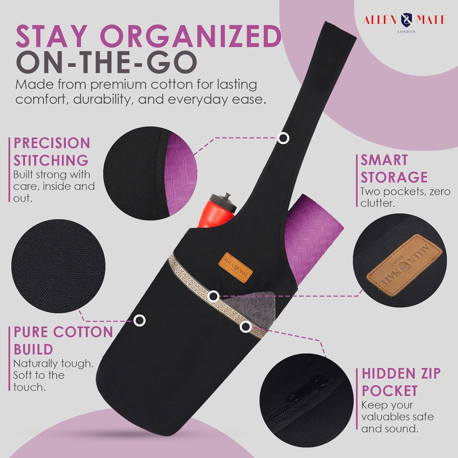 ALLEN & MATE Unisex Yoga Exercise Mat Bag with Large Size Pocket, Big Capacity Mat Tote Shoulder Carrier for Men & Women