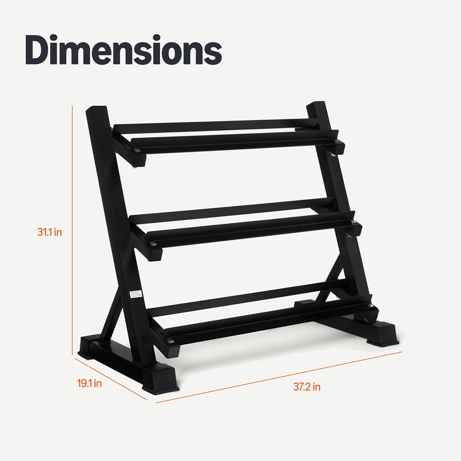 CAPACITY: 3-tier weight rack keeps dumbbells safely stored and easily accessible; holds up to 1,000 pounds