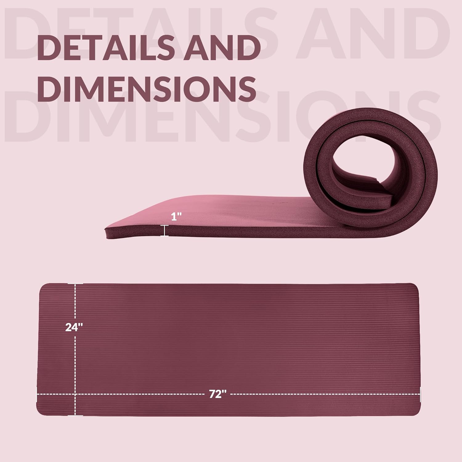BalanceFrom 1-Inch Premium Yoga Mat,High-Density NBR Foam,1 Inch Thick Yoga Mat for Superior Cushioning and Joint Protection,Non-Slip for Pilates,Gym & Exercise,Multiple Color