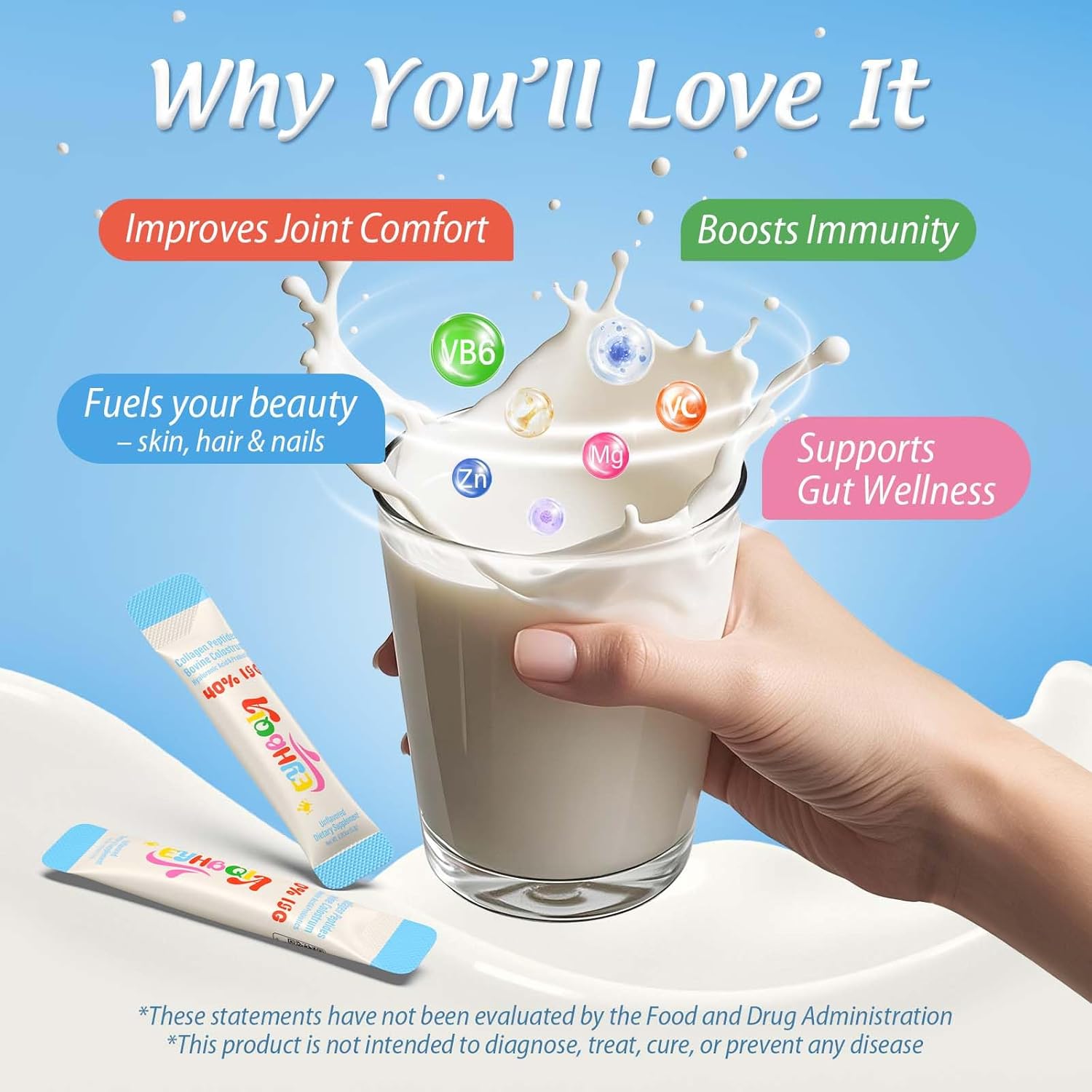 [Convenient Daily Packets for your On-the-Go Lifestyle] Designed for your busy life, our collagen peptides & colostrum supplement comes in easy-to-carry packets. Simply mix one packet with cold or room-temperature water (below 104°F / 40°C) or your favorite beverage to maintain the effectiveness of probiotics and lactoferrin. Enjoy the full benefits of collagen and colostrum—for skin, gut, and immune support anytime, anywhere.