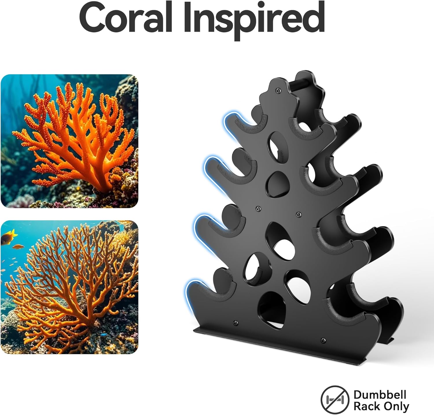 A-Frame Shape:JOSMIMIC’s 3-tier dumbbell rack features a coral-inspired A-frame shape that blends style with function. Its elegant design not only enhances the look of your home gym but also keeps your dumbbells stable and secure, ensuring a safer workout environment