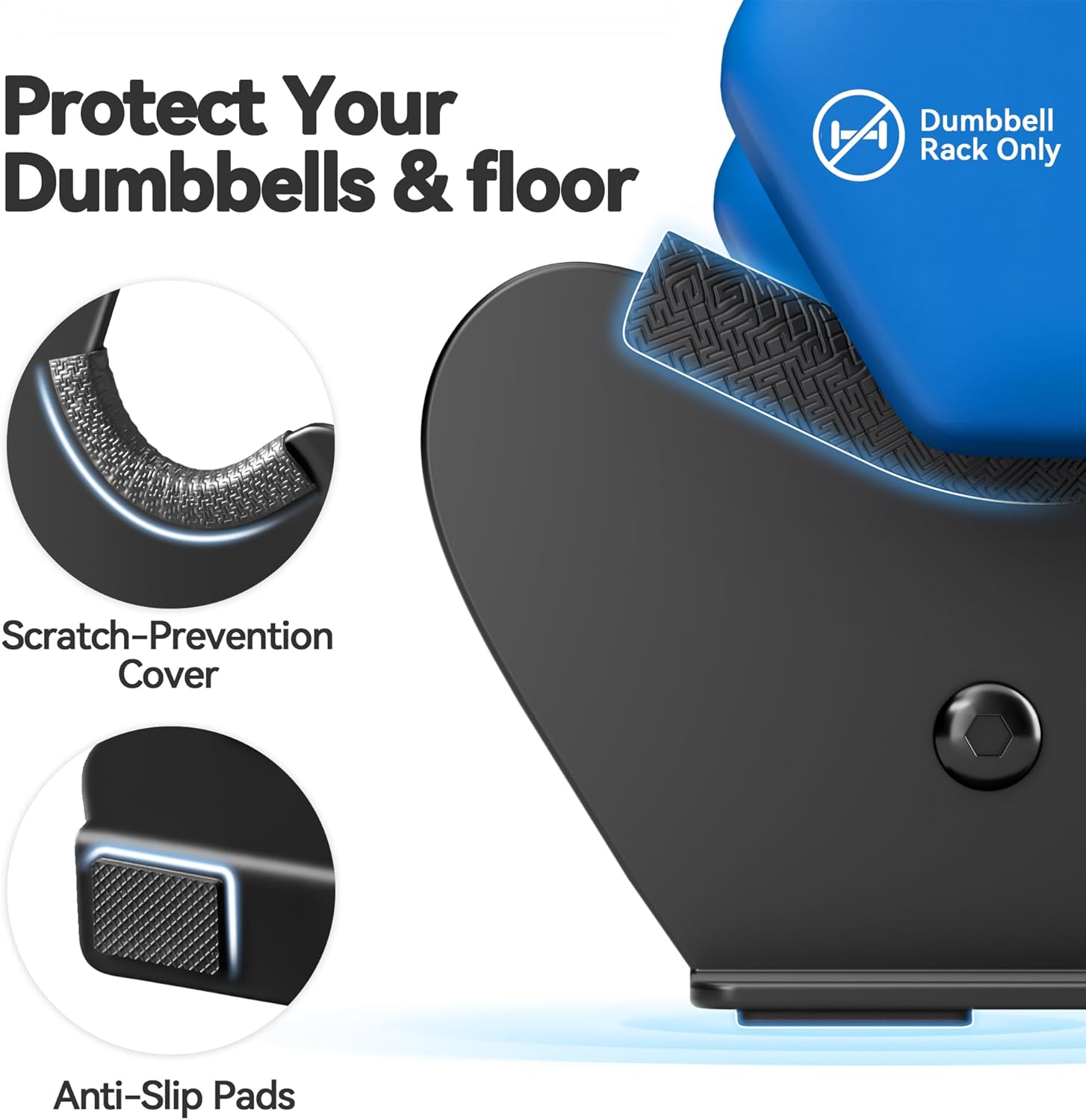 Protect Your Dumbbells and Floors:Storing dumbbells on the floor can cause unnecessary wear and tear to both the weights and your flooring. The durable rack with a rust-resistant coating and protective edge rubber covers provides a safe and protective space, extending the life of your equipment and preserving your home gym