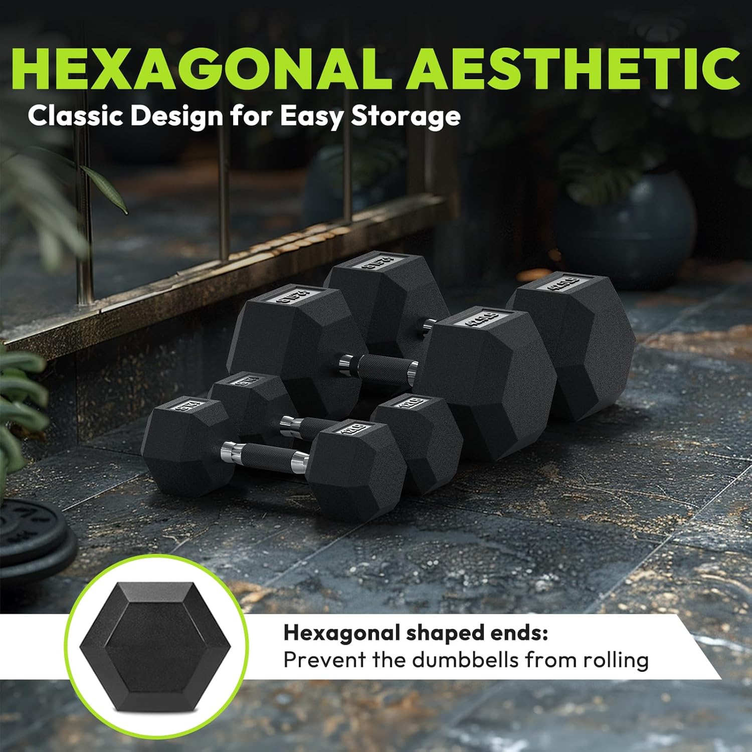 Hex Dumbbell Set 2.5-400 lb, Rubber Encased Exercise & Fitness Dumbbells, Weights Dumbbells Set of 2, Hand Weight for Strength Training