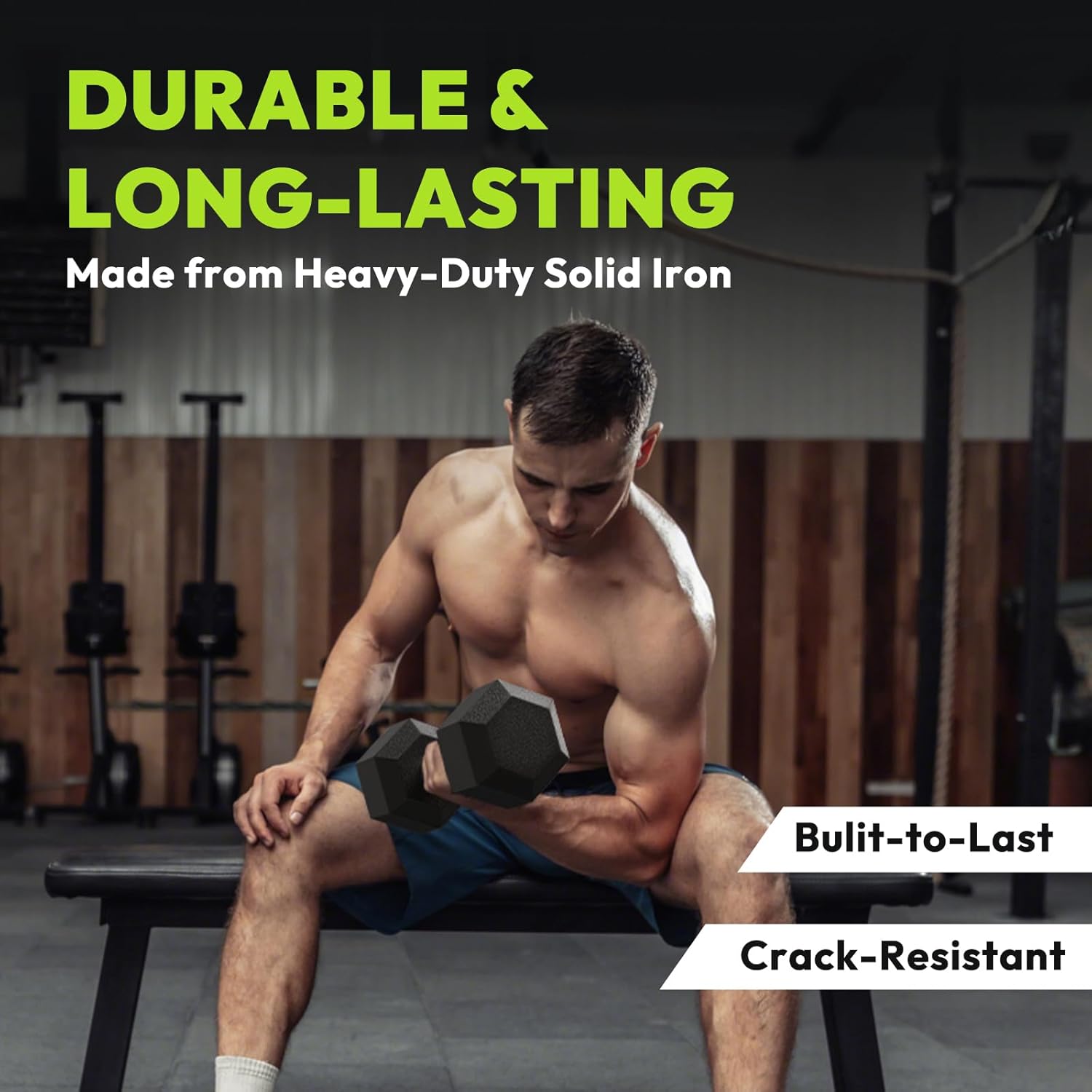 Hexagonal Design for Stability: The hexagon-shaped heads provide stability and prevent rolling, ensuring safe and effortless workouts while offering convenient storage. This practical design makes them a reliable choice for fitness routine.