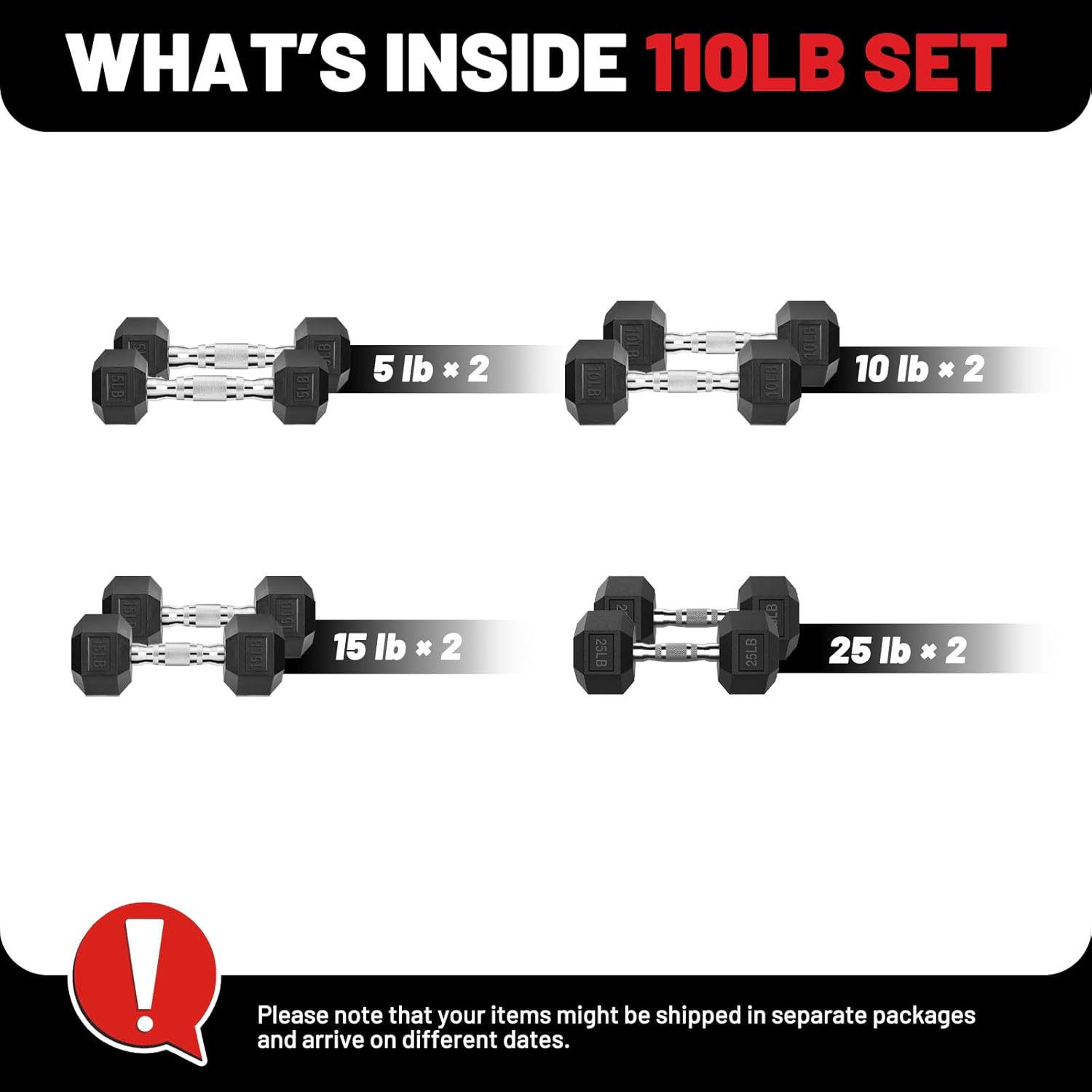 PAPABABE Hex Dumbbell Set 45-550 lb, Rubber Encased Home Gym Dumbbells, Weights Dumbbells for Women & Men, Hand Weight for Strength Training