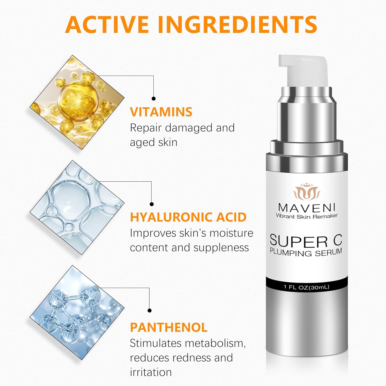 QUICK ABSORPTION: MAVENI Vitamin C Serum contains a unique active lock delivery system. This helps our active ingredients moisturize your skin and can be quickly absorbed into the skin.