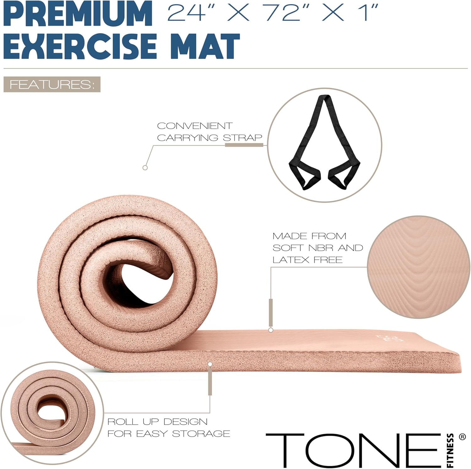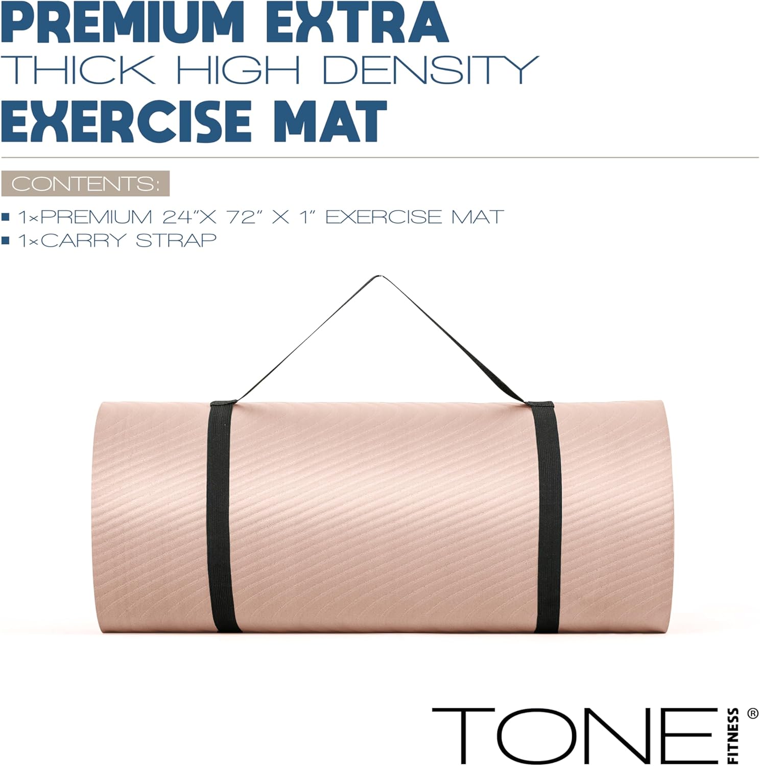 Tone Fitness 1-Inch Thick Yoga Mat | High-Density, Non-slip Exercise Mat with Carrying Strap for Yoga, Pilates, & Home Gym Workouts | Multiple Options