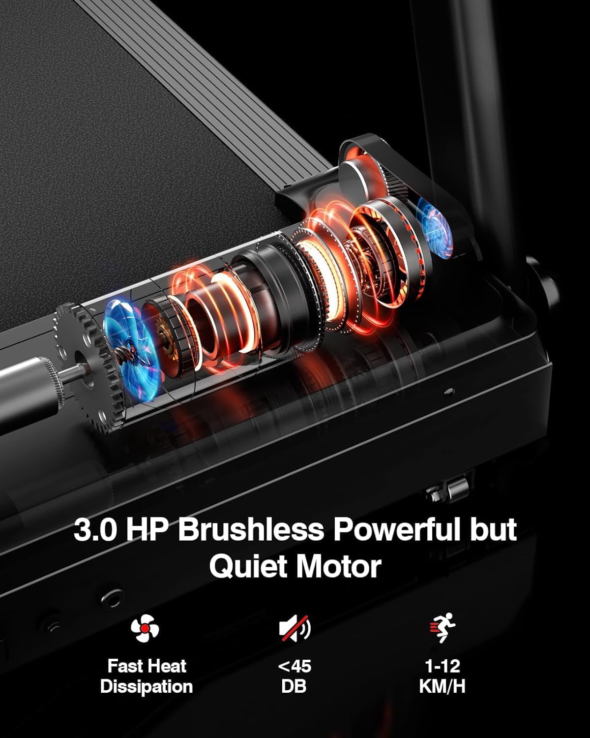 Whisper-Quiet, Long-Lasting Motor ~ Powered by a 2.25HP motor, this treadmill operates at a noise level below 45dB, ensuring a quiet workout environment.UMAY motor not only extends the lifespan fourfold compared to other motors but also aligns with eco-friendly and energy-efficient practices