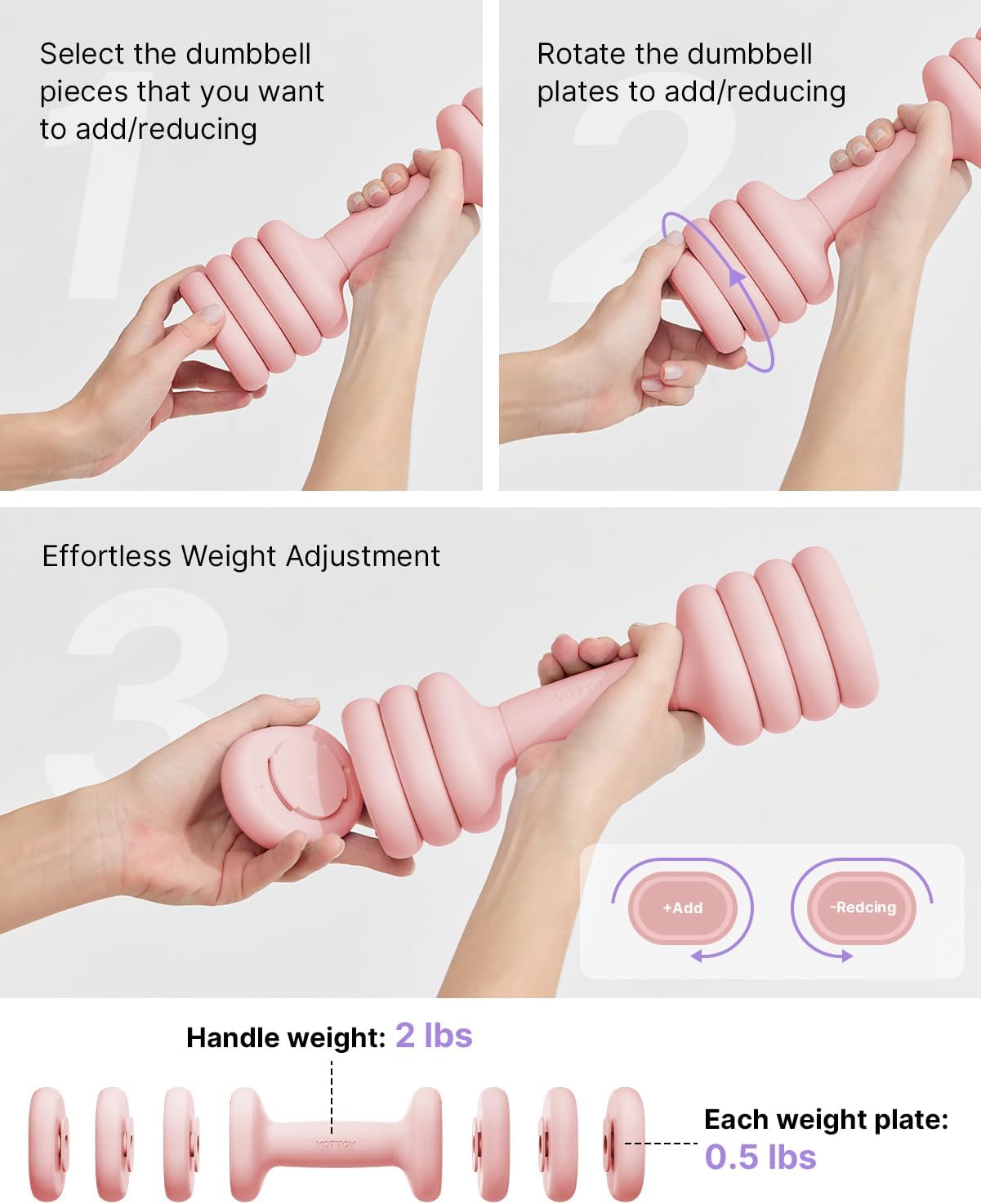 YOTTOY Adjustable Dumbbell Set of 2, 4-in-1 Hand Weights for Women at Home, Compact Free Weights Dumbbells Set with Soft Grip and Base, 2-5 lbs Each for Home Gym